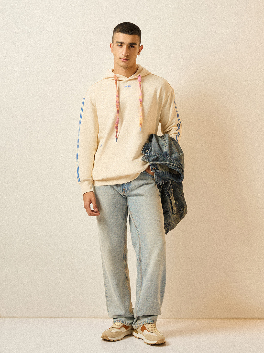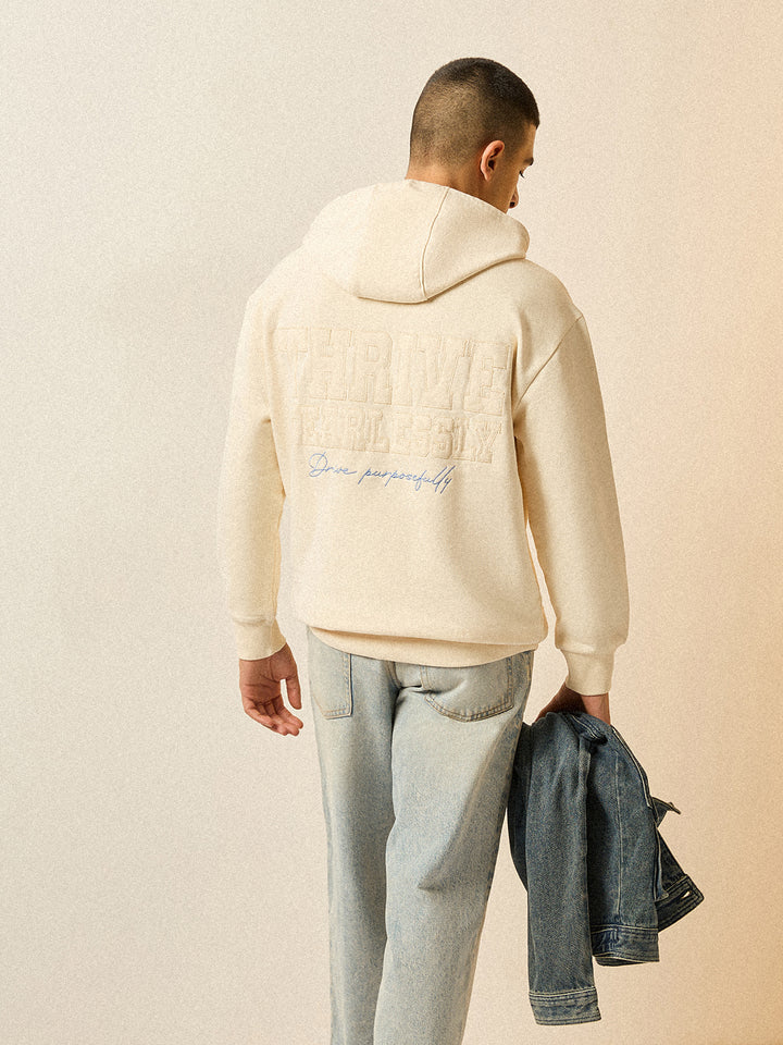 Beige Relaxed Fit Hoodie with "Thrive Fearless" Puff Print Design