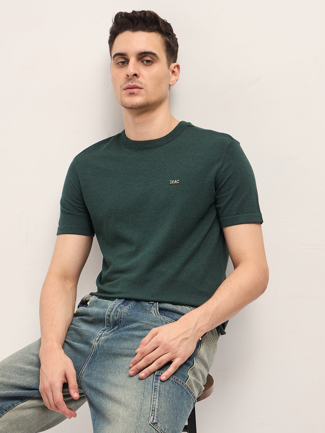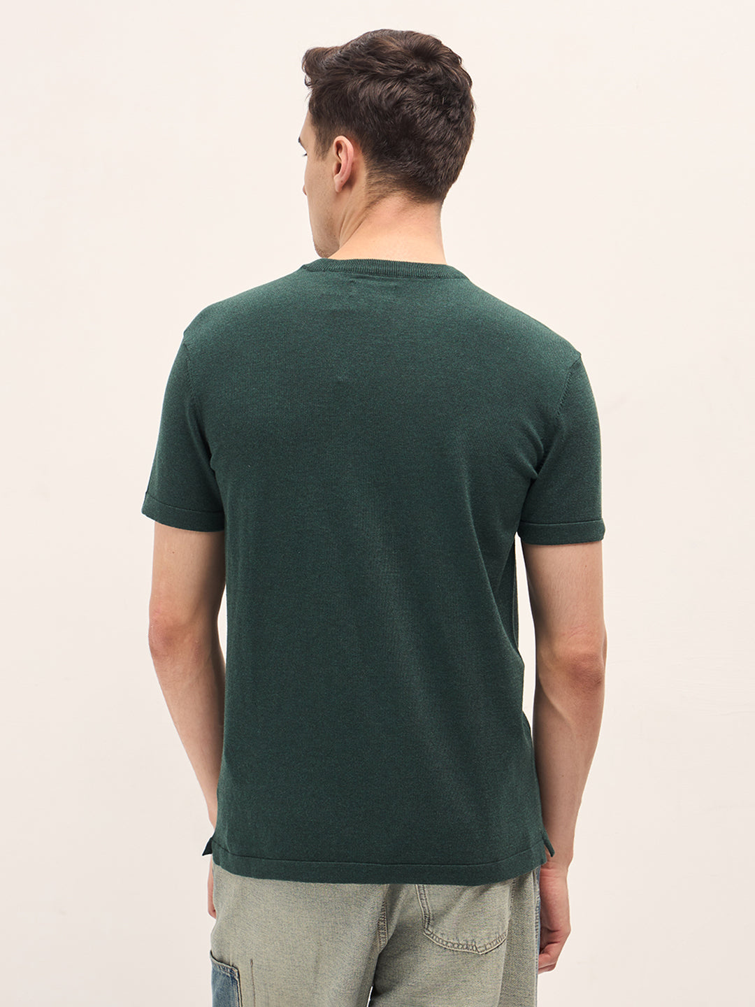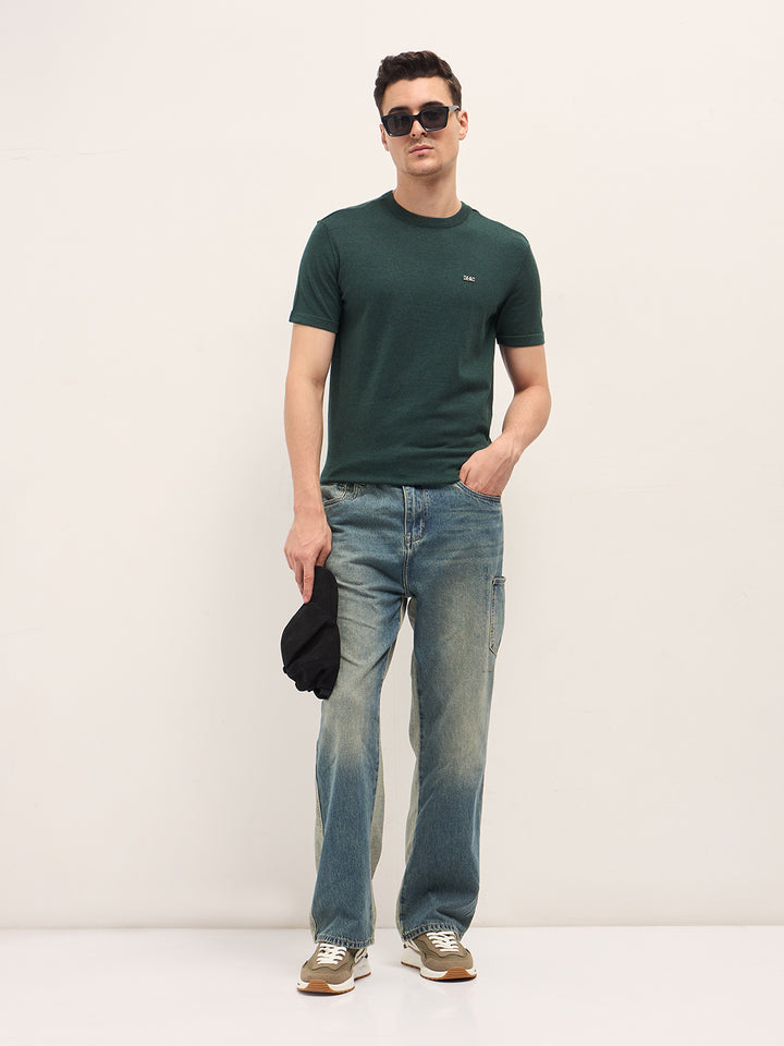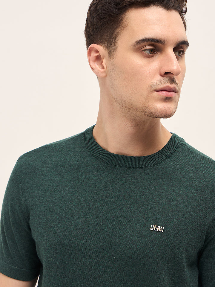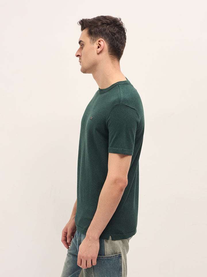 Green Solid Regular Fit Ribbed Crew Neck T-shirt