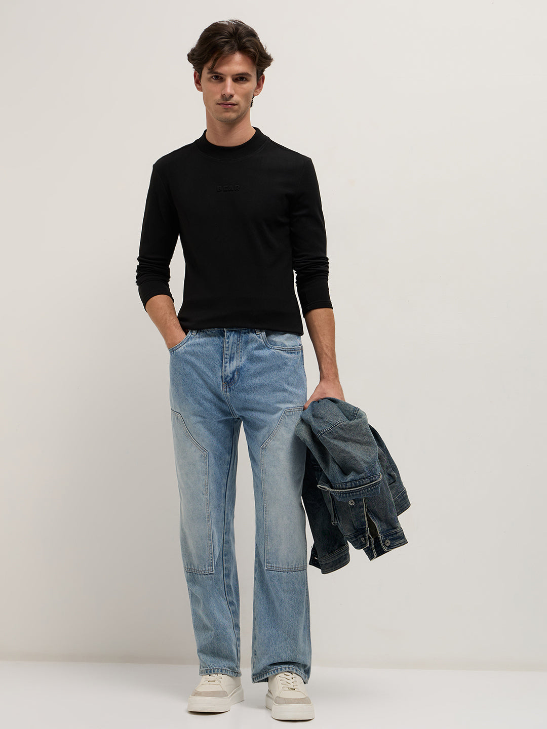 Black Slim Fit Crew Neck T-Shirt with Soft & Stretchable Fabric