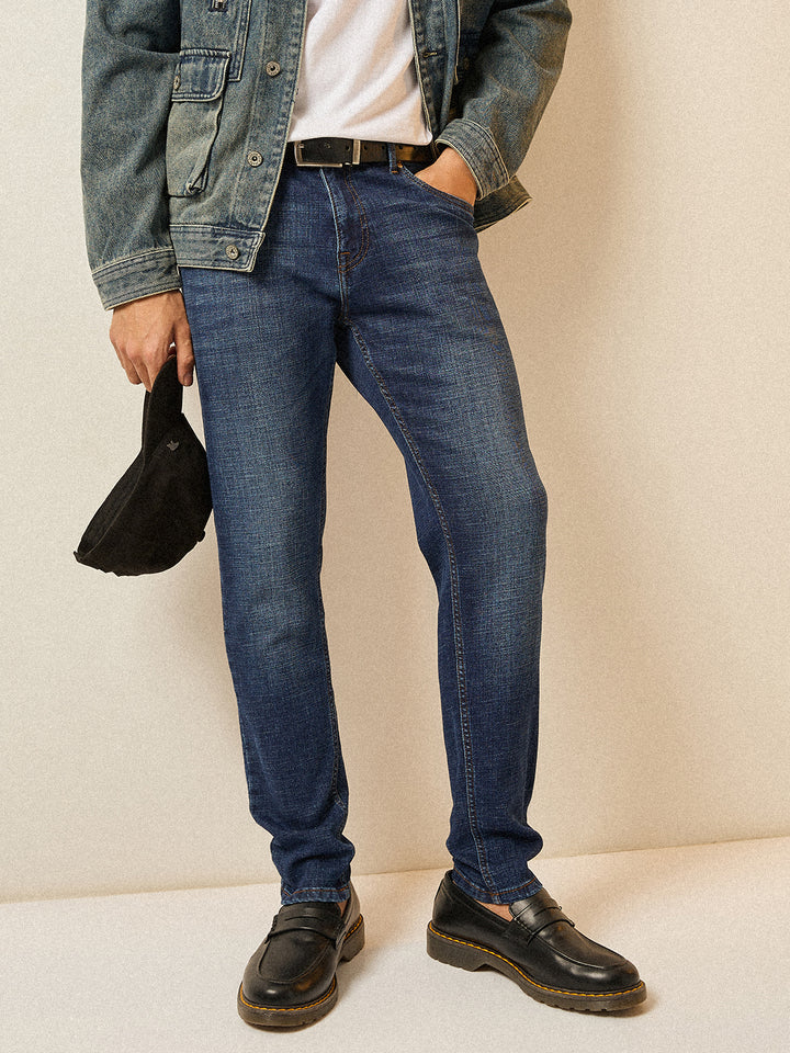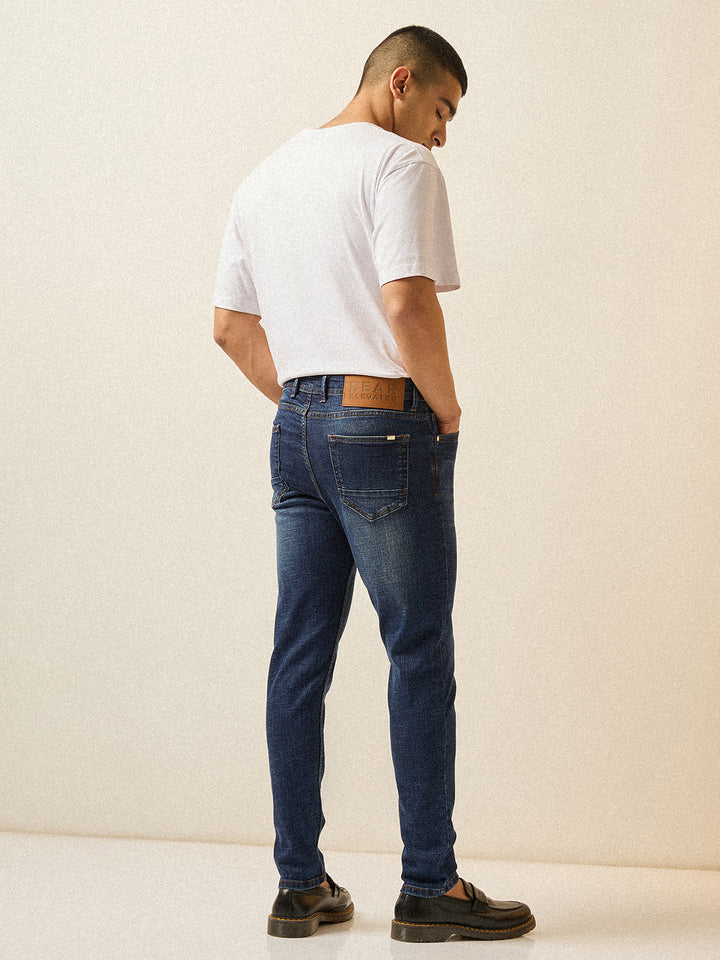 Dark Blue with Mid Fade Mid-Rise Skinny Fit Jeans