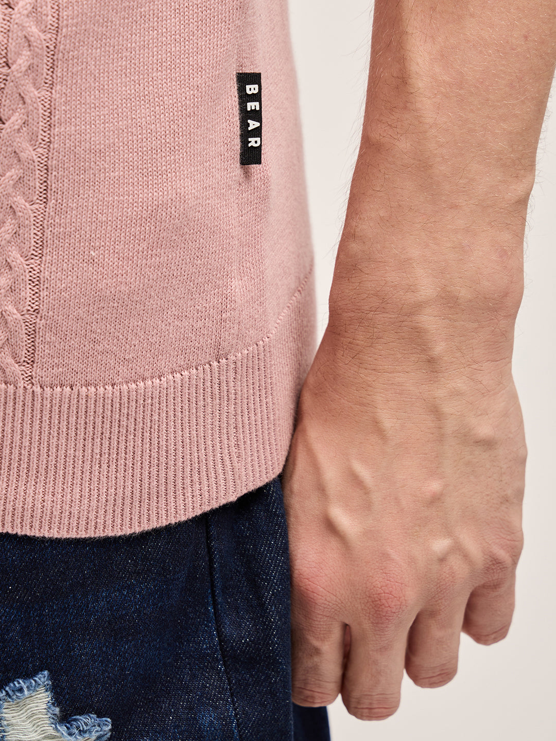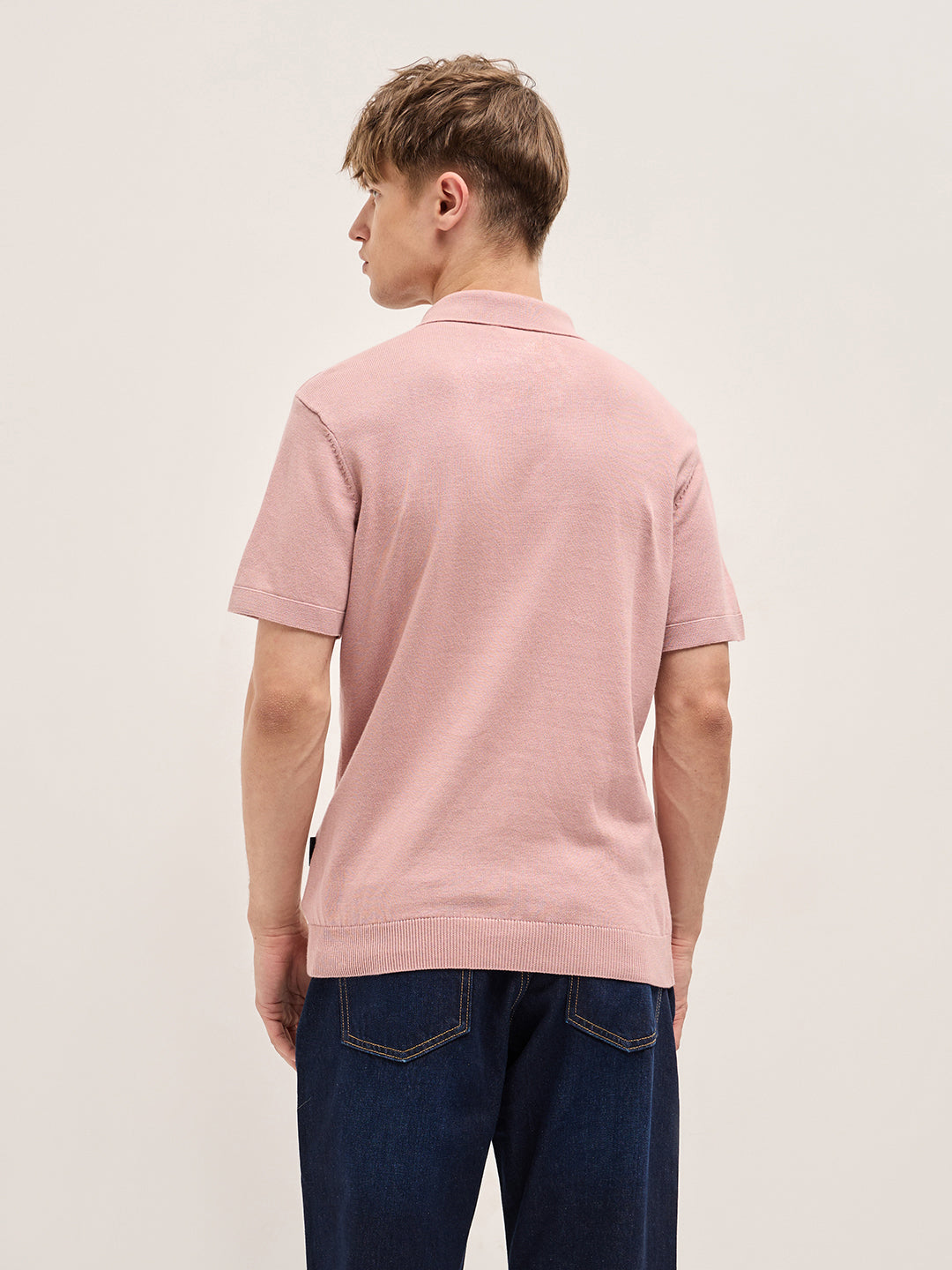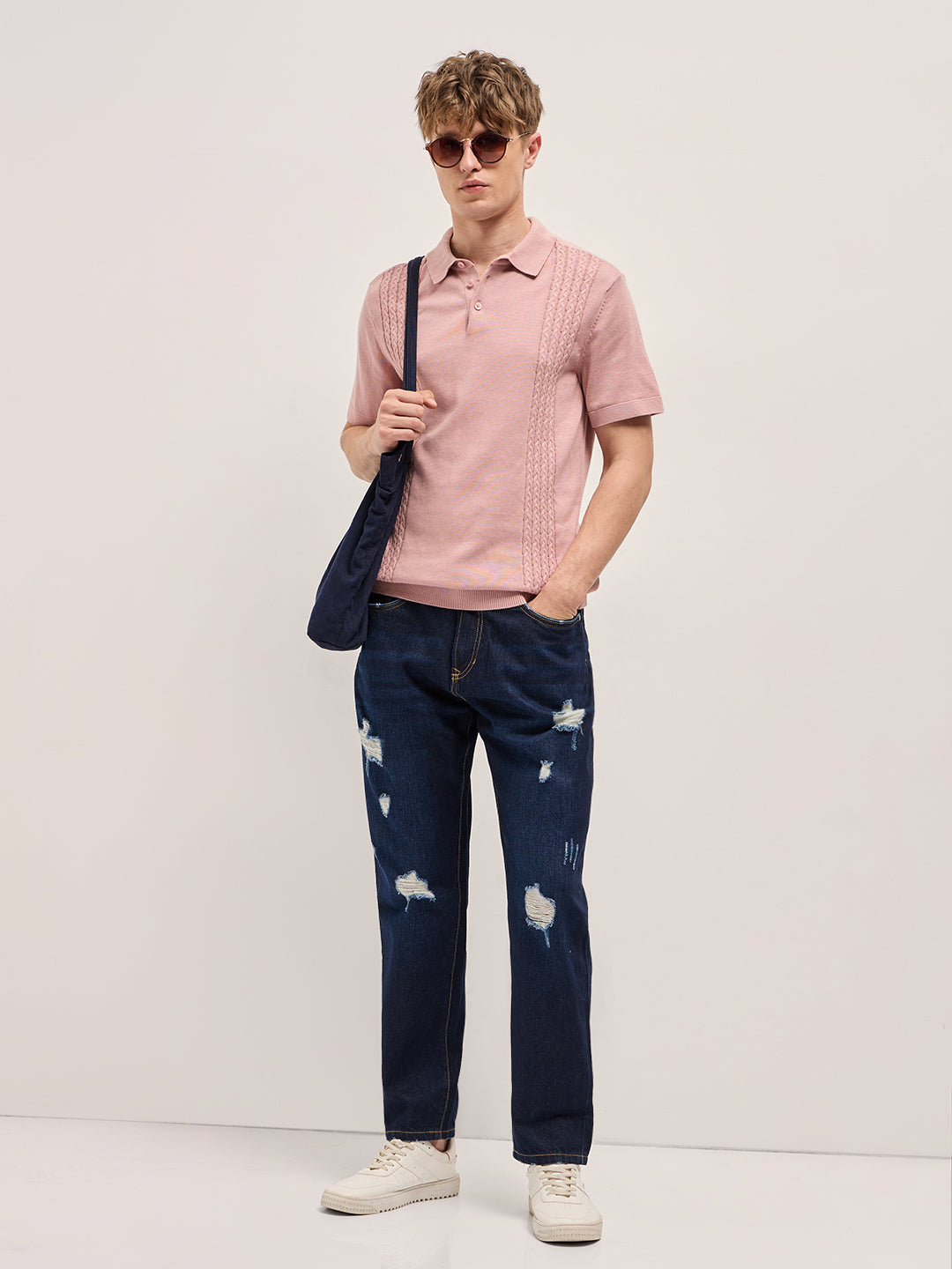 Pink Textured Cable-knit Panel Slim Fit Polo
