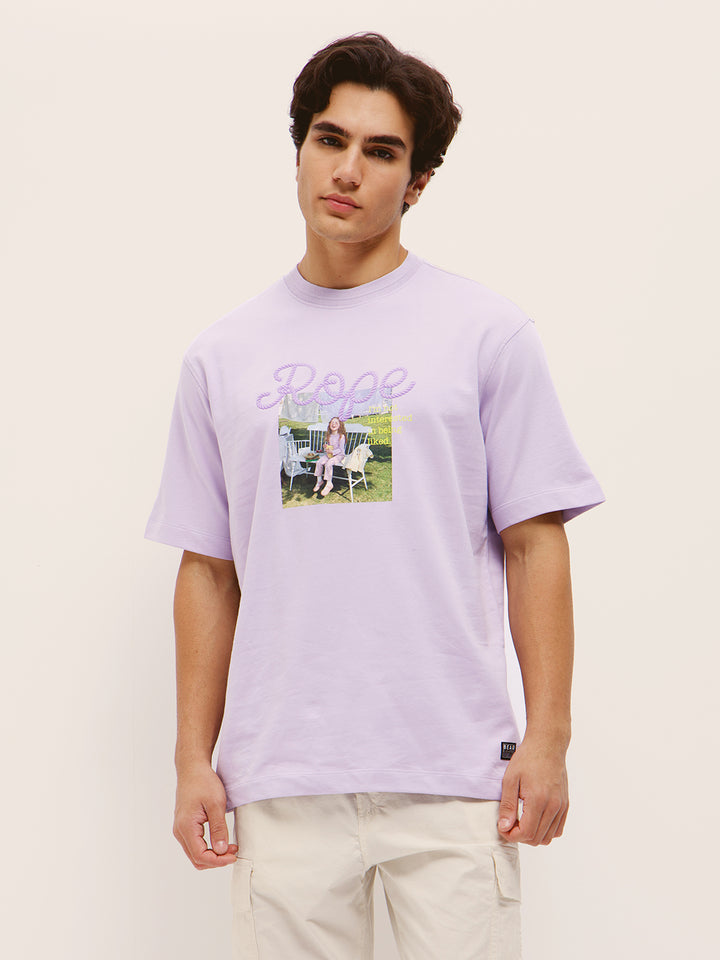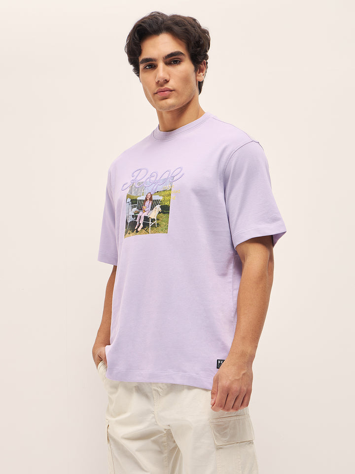 Purple 3D graphic Design Crew Neck Oversize T-Shirt