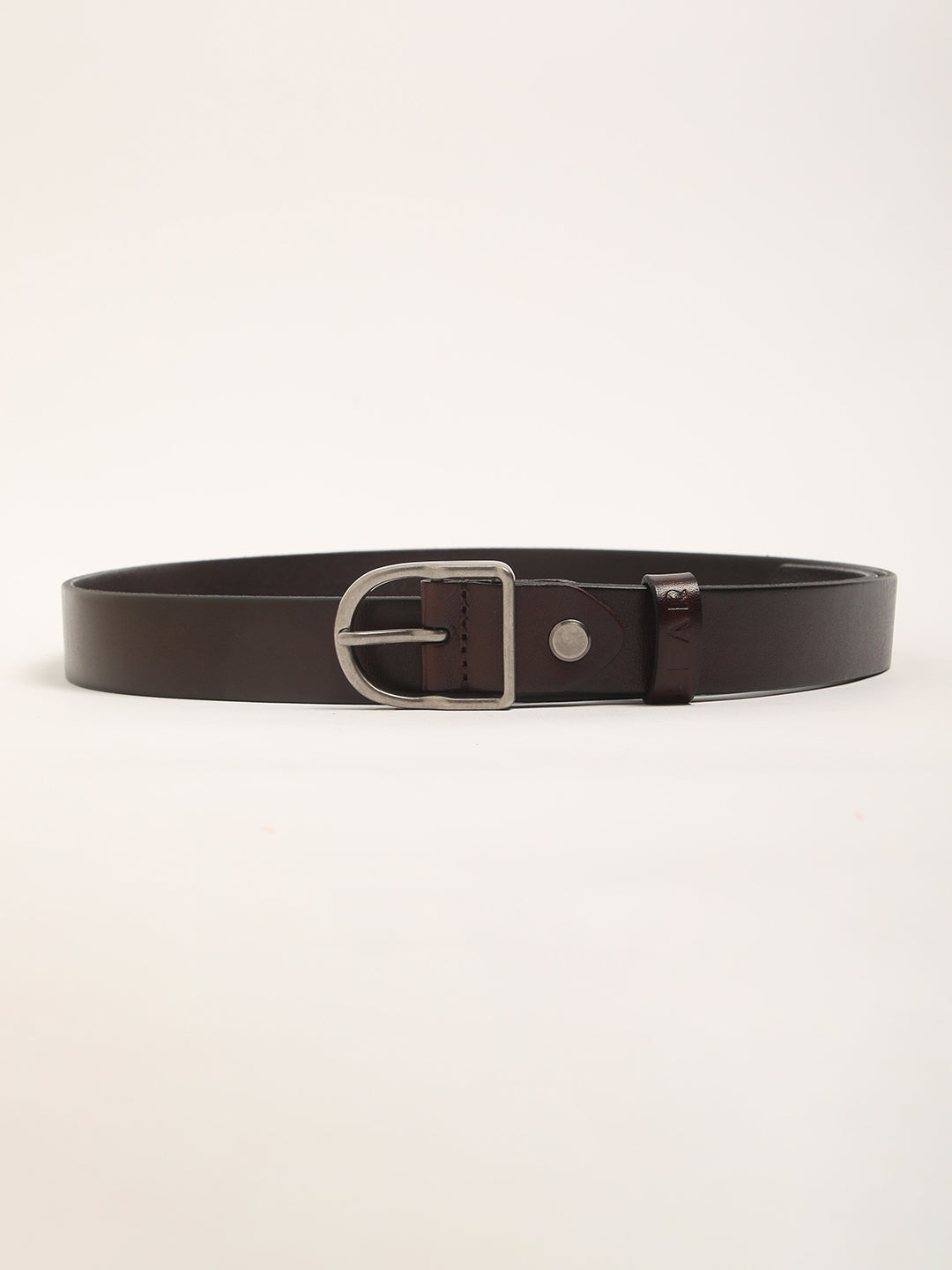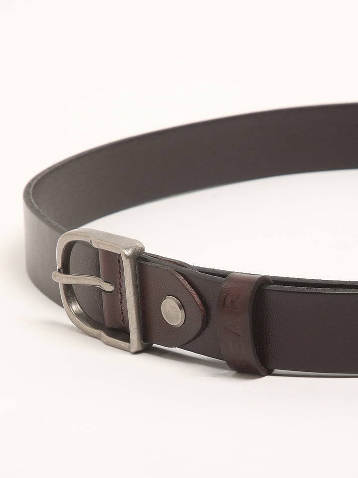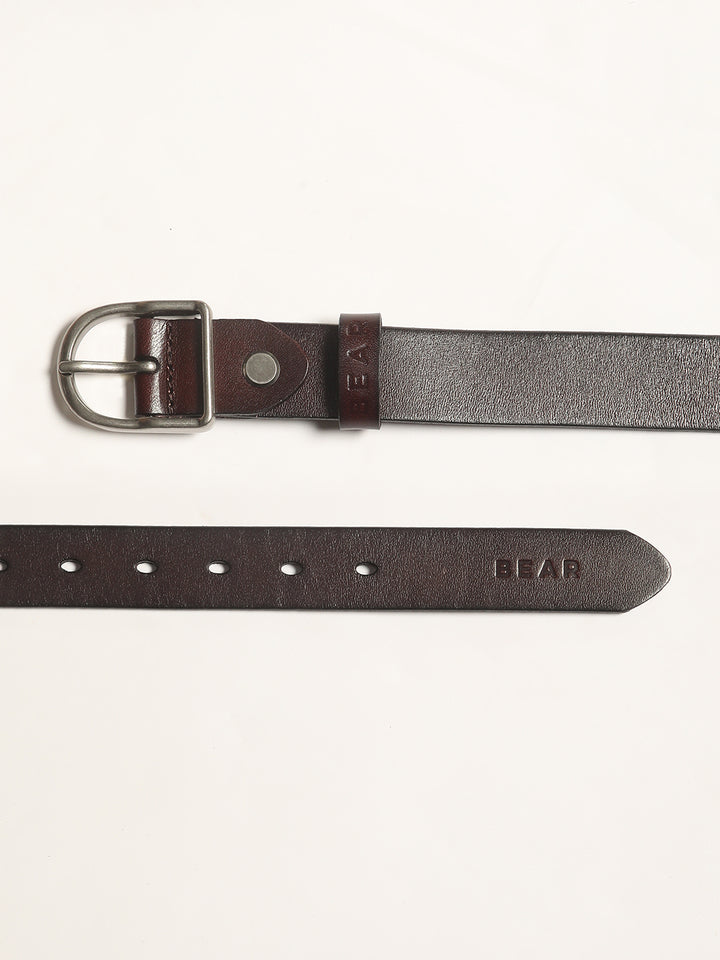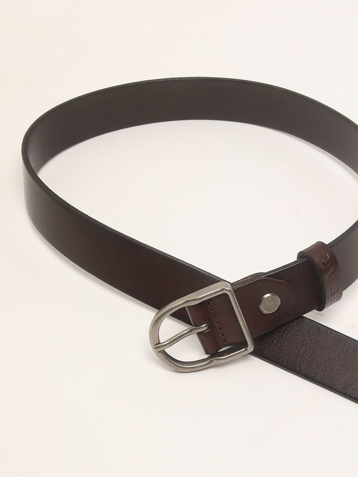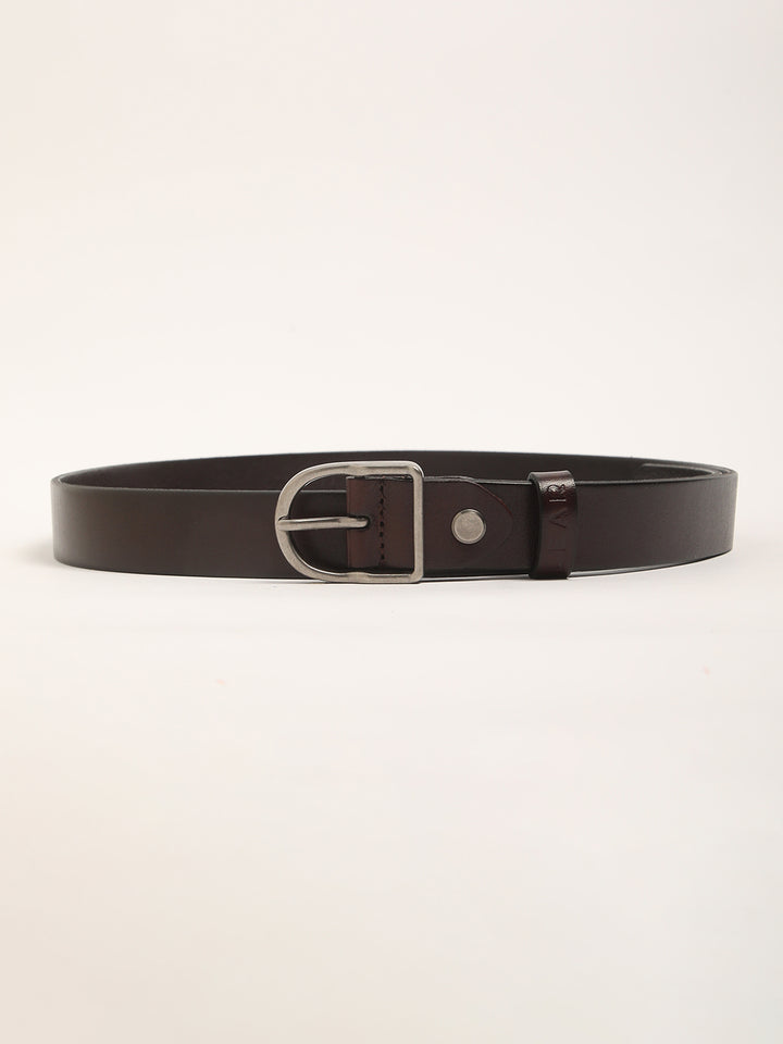 Men Brown Pure Leather Slim Width Casual Belt with Tang Closure