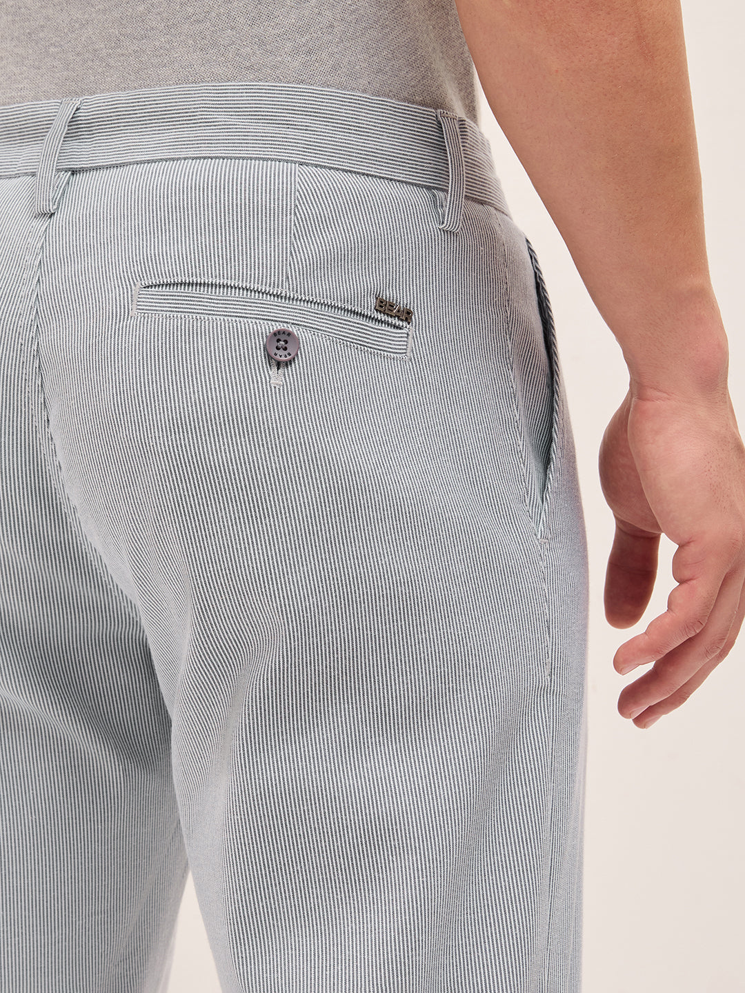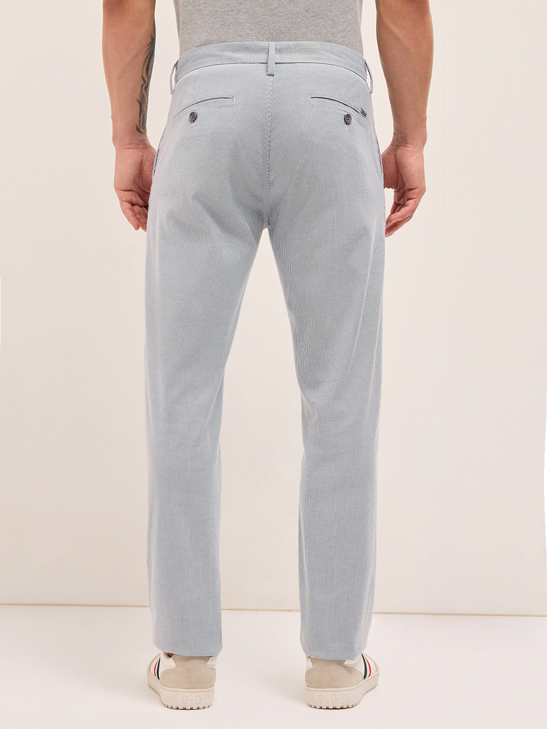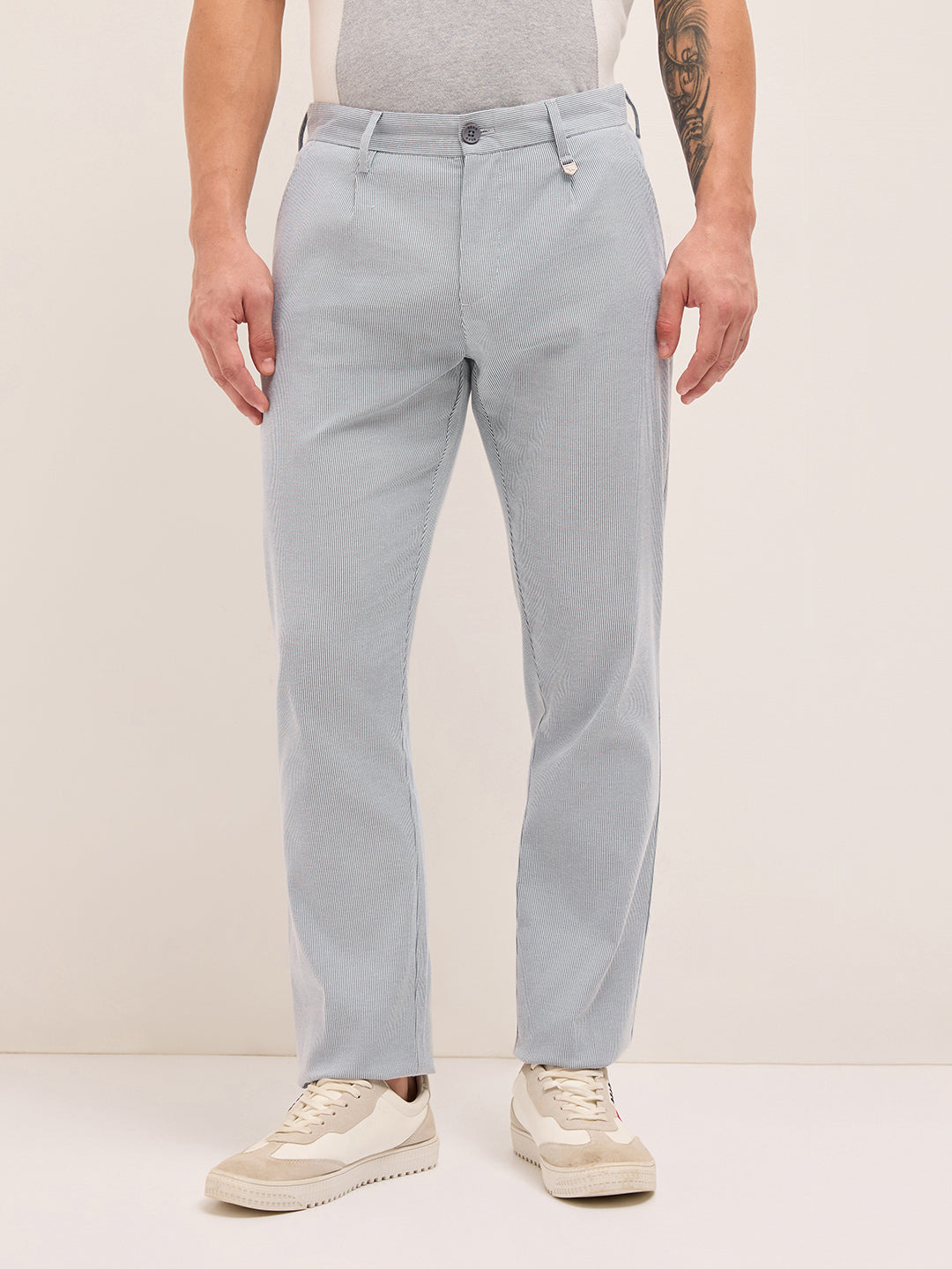 Blue and White Pinstriped Straight Fit Casual Trousers