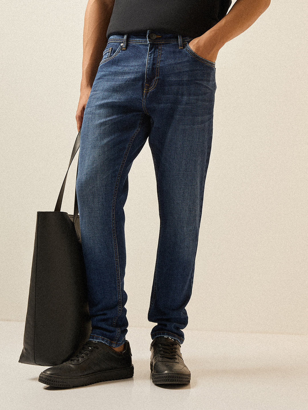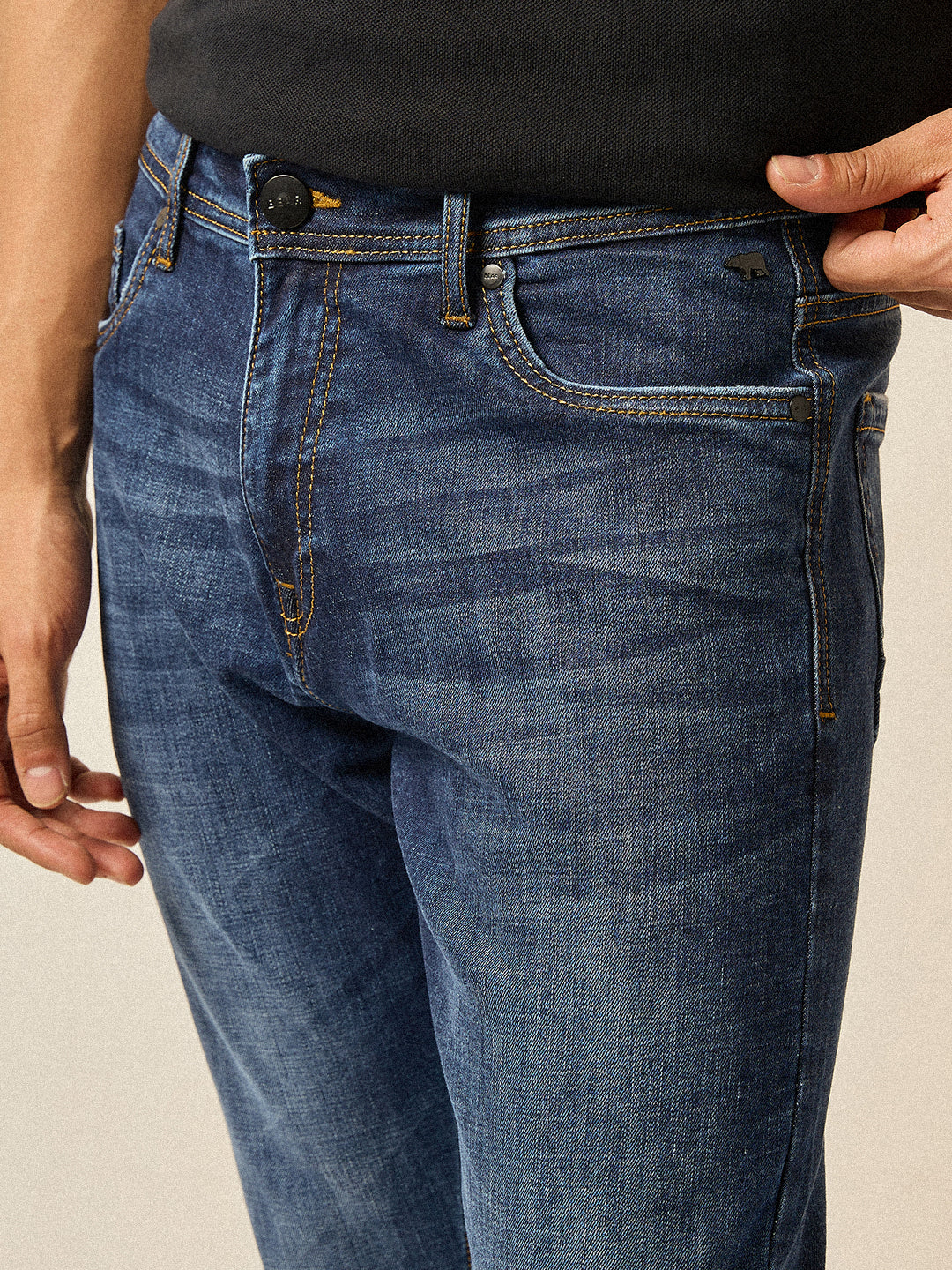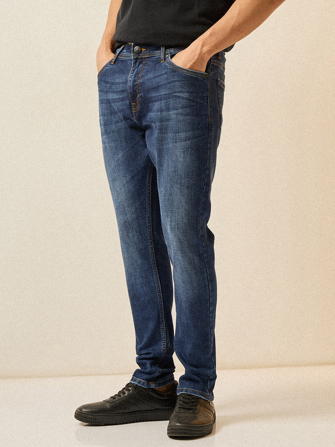 Dark Blue with Mid Fade Mid-Rise Skinny Fit Jeans
