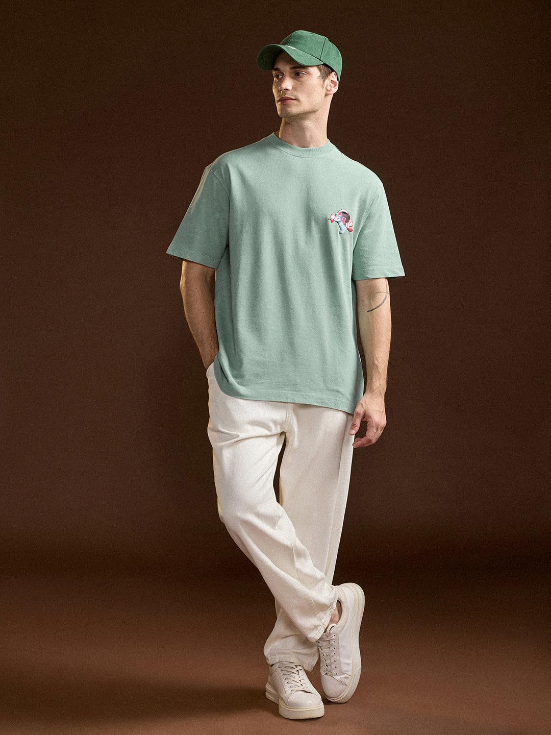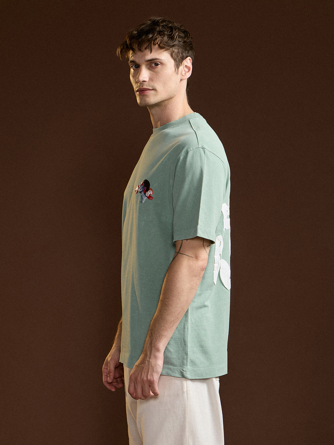 Mint Green Oversize Graphic Print Crew Neck T-shirt
