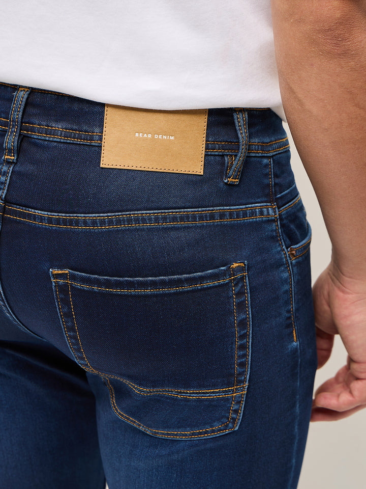 Dark Blue with Light Fade Mid-Rise Skinny Fit Jeans