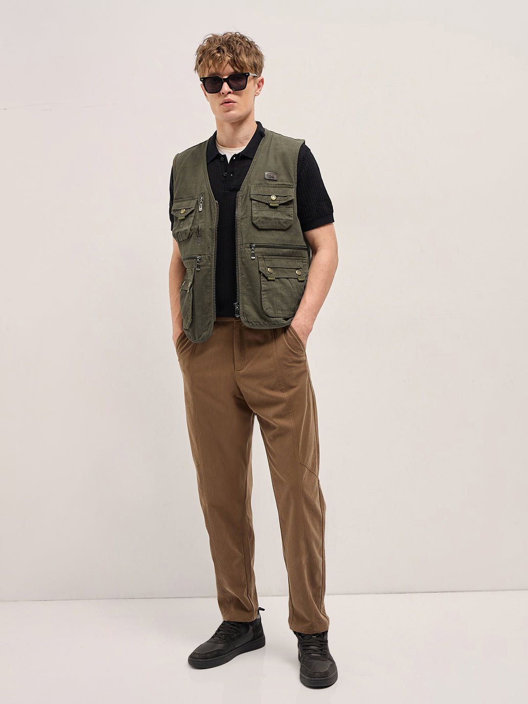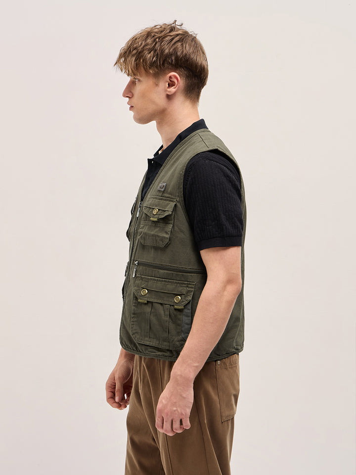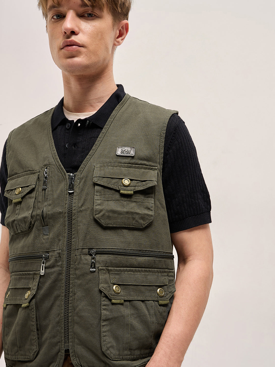 Olive Outdoor Utility Multi-Pocket Vest Jacket