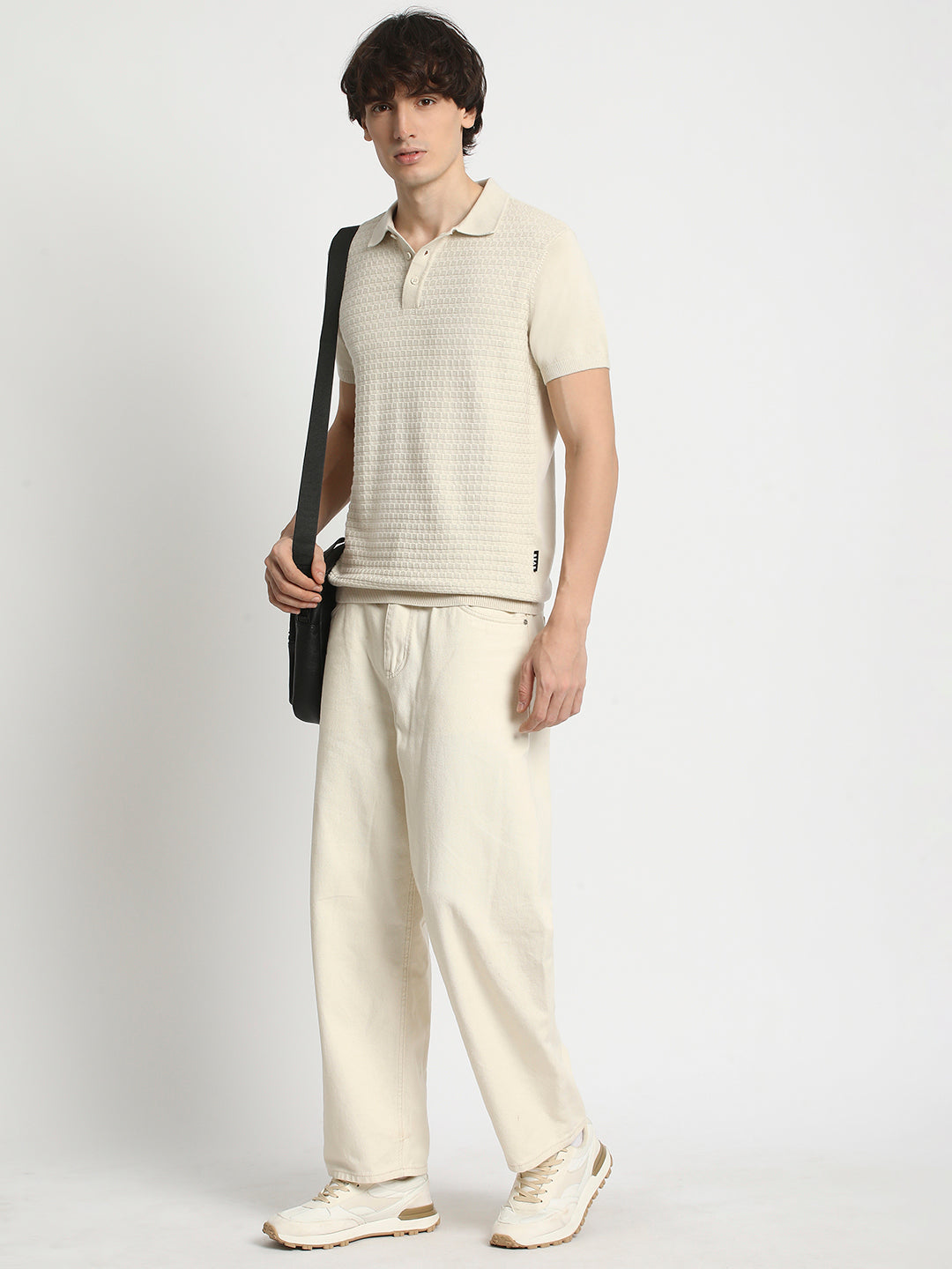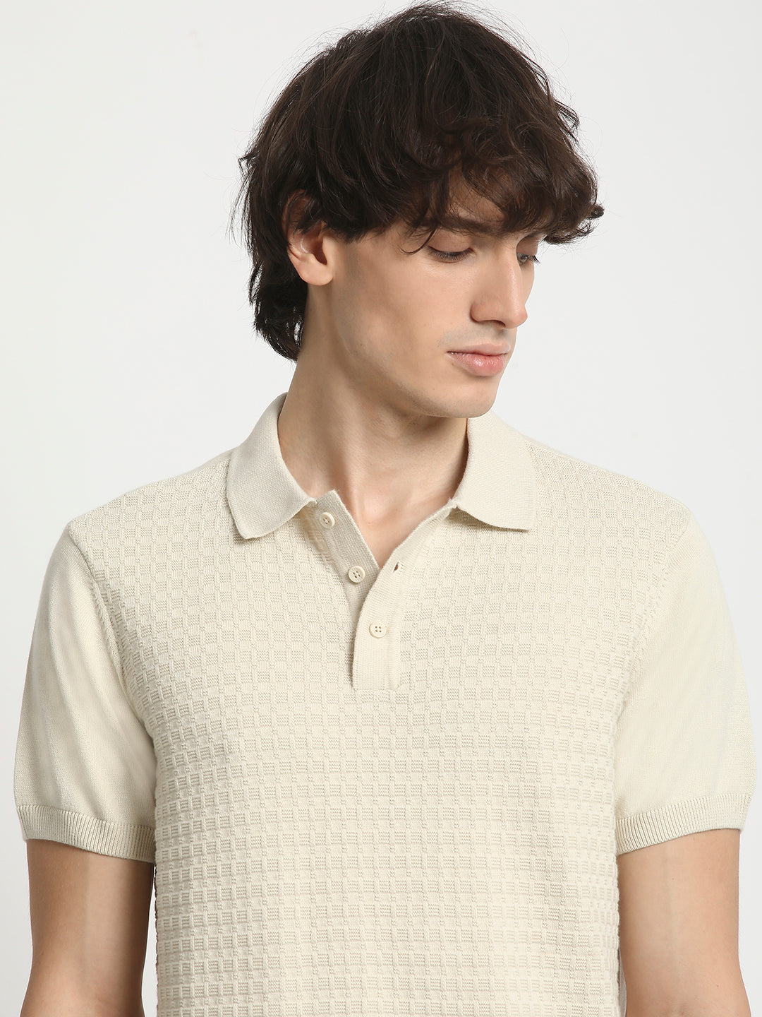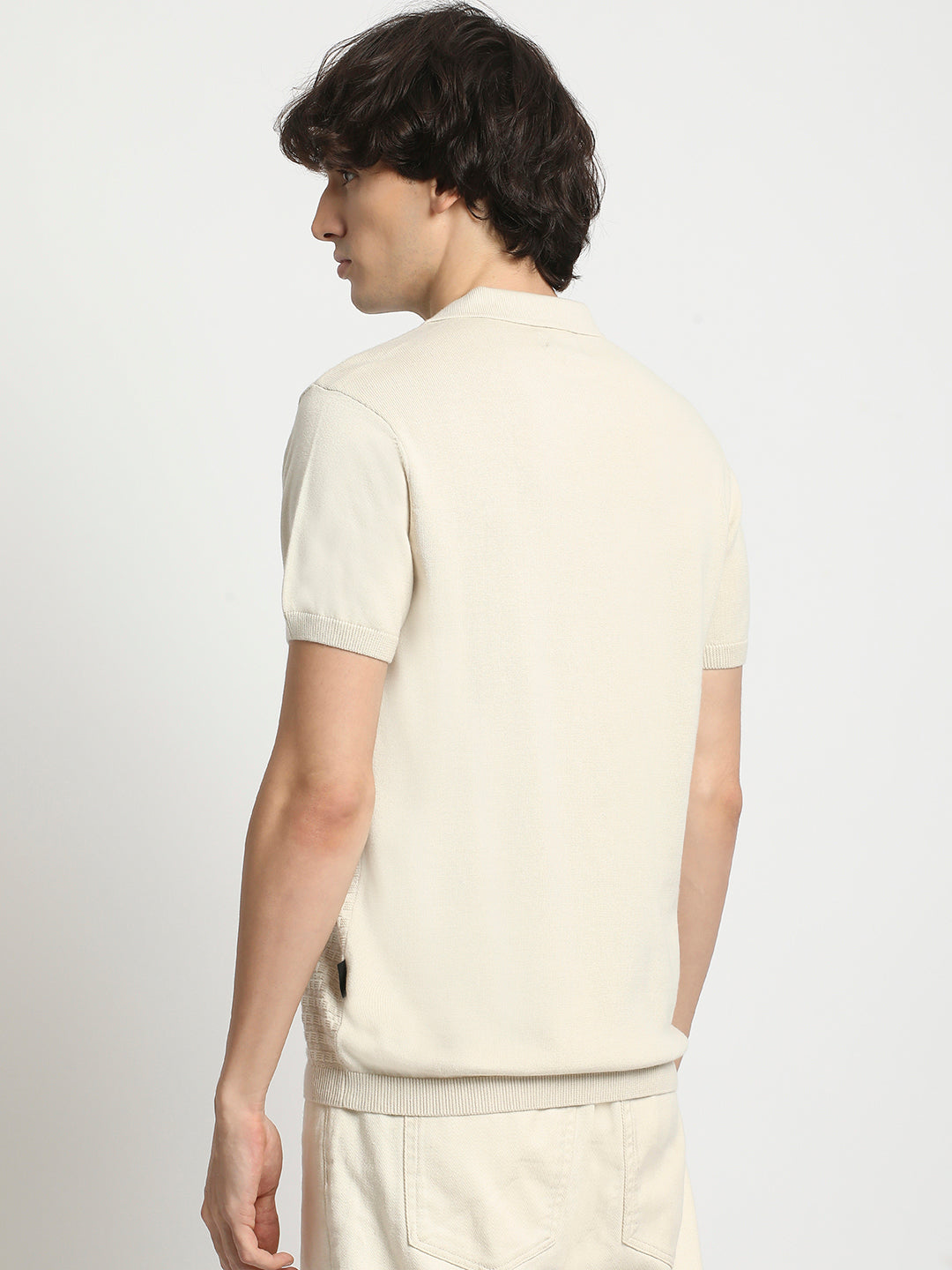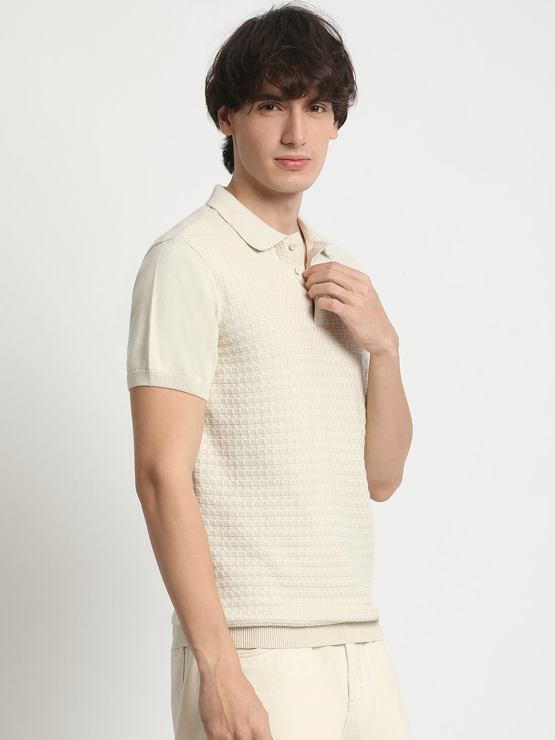 Men's Classic Beige Short Sleeve Polo T-Shirt