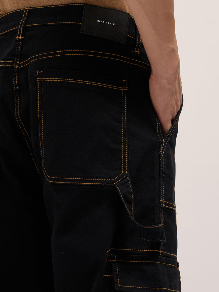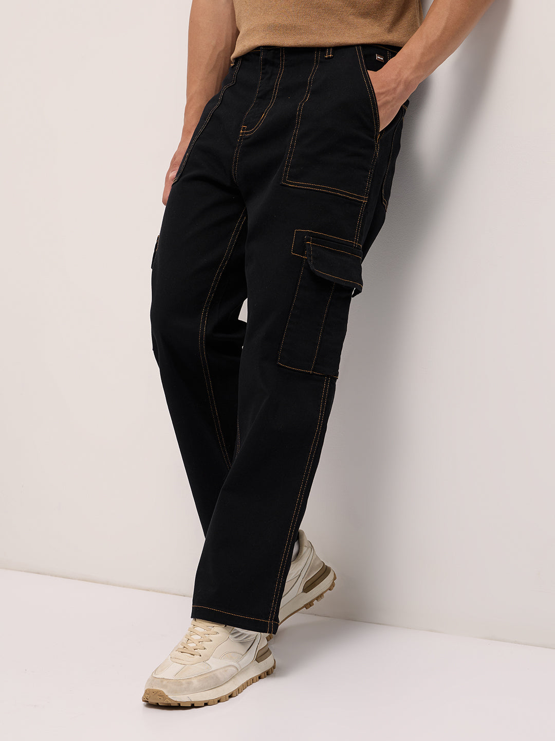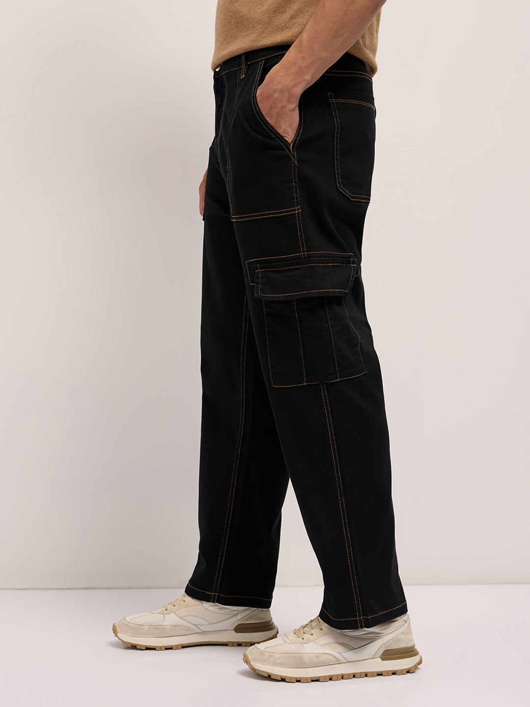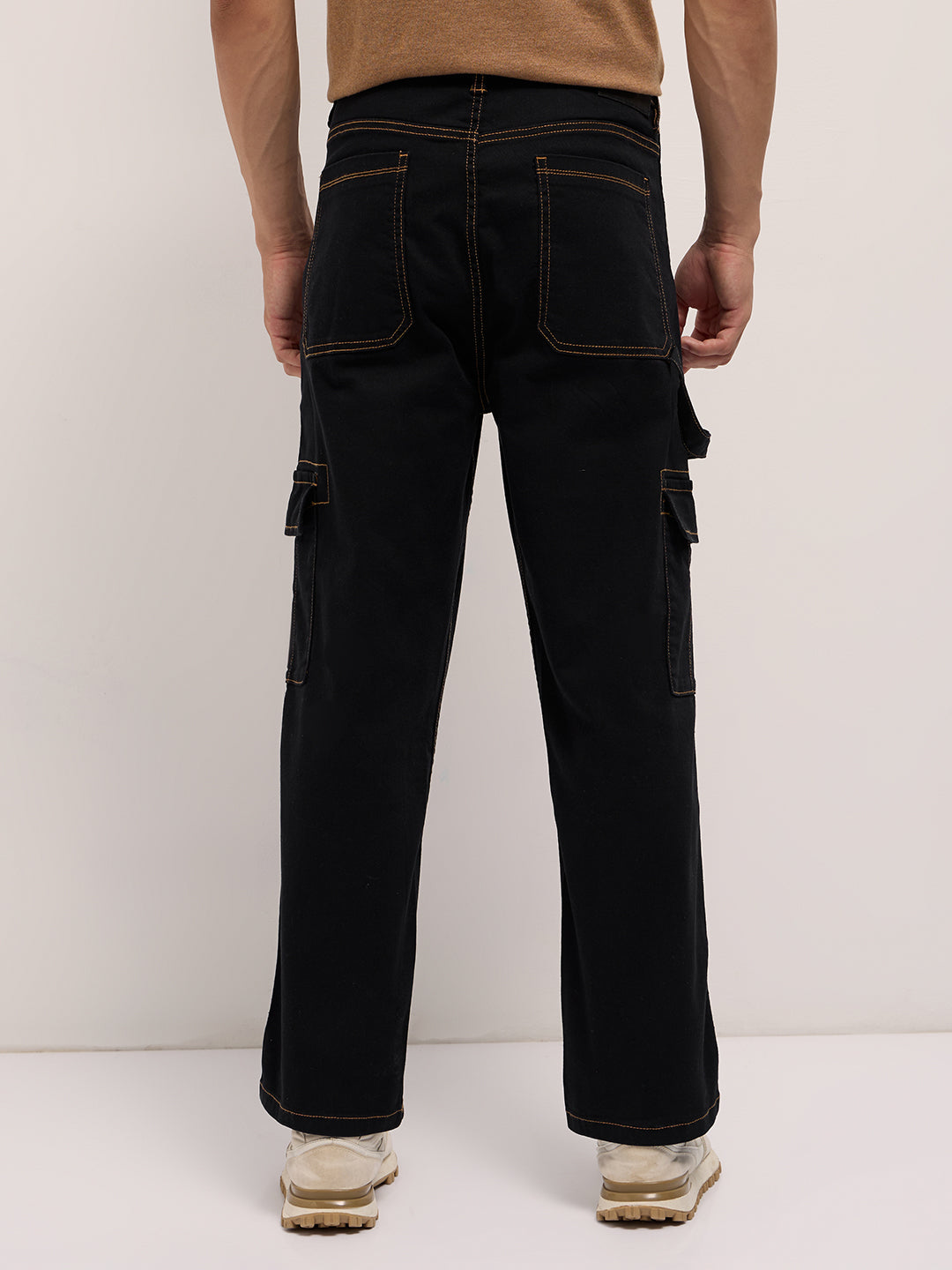 Black Mid-Rise Baggy Fit Cargo Jeans
