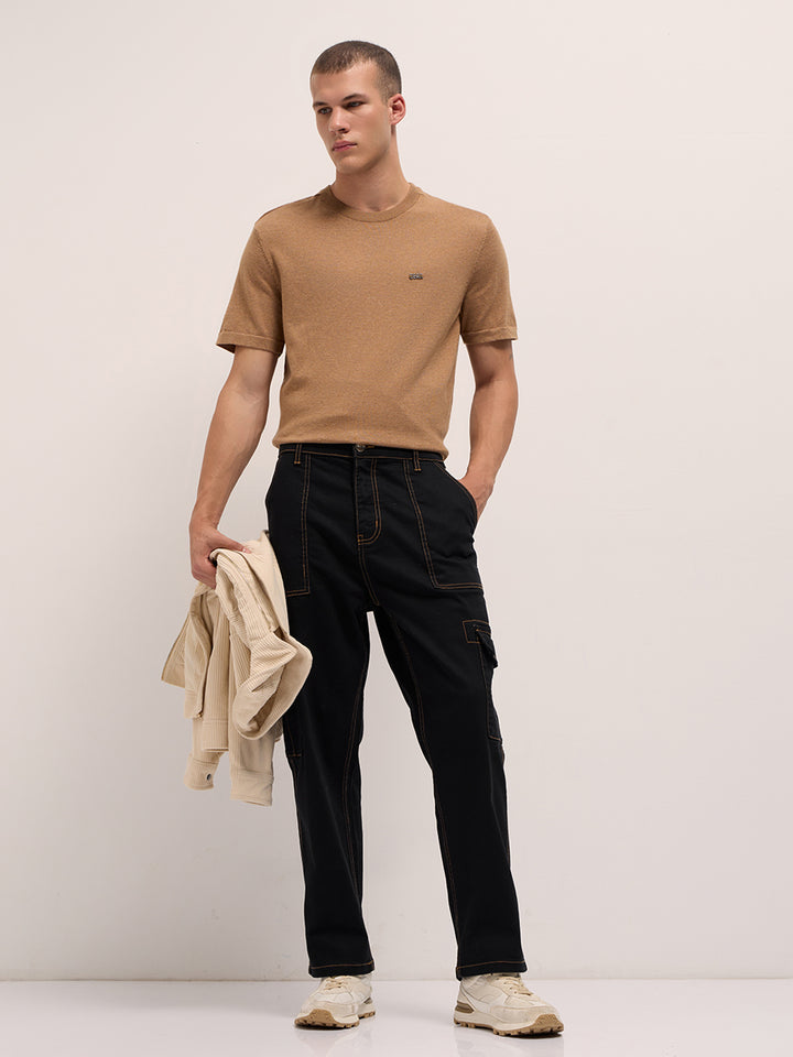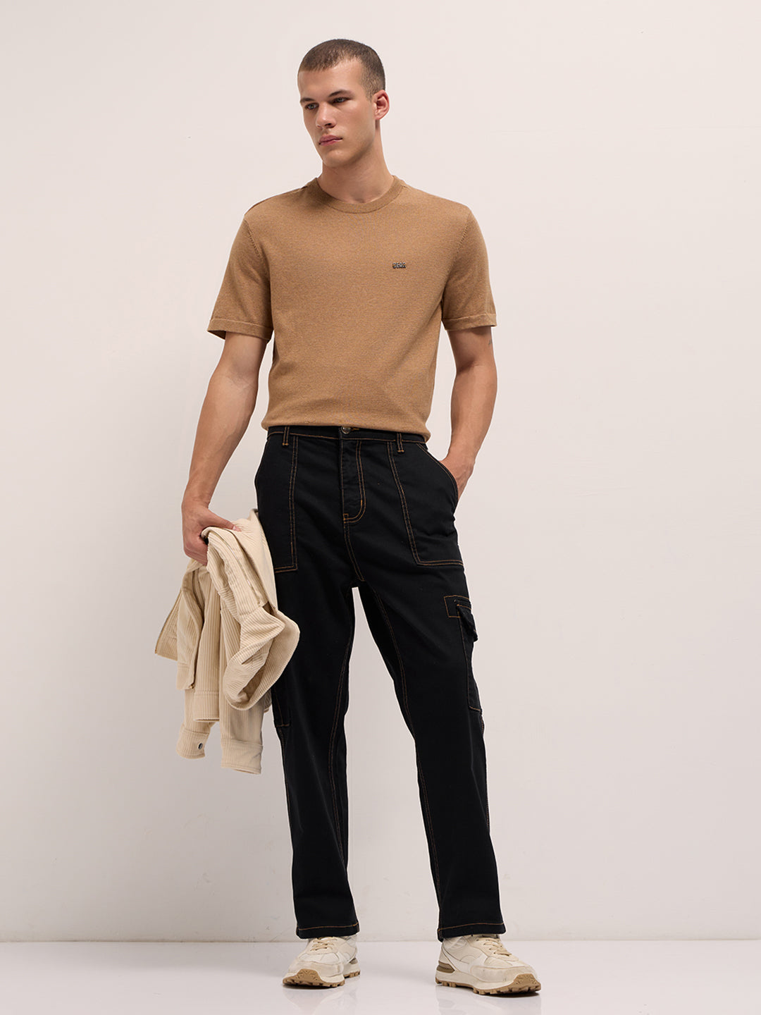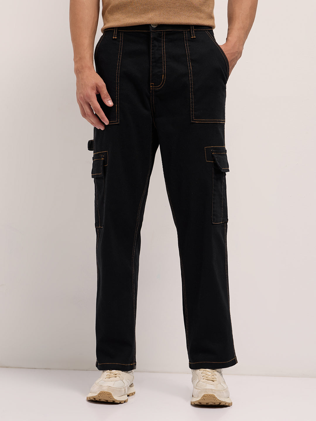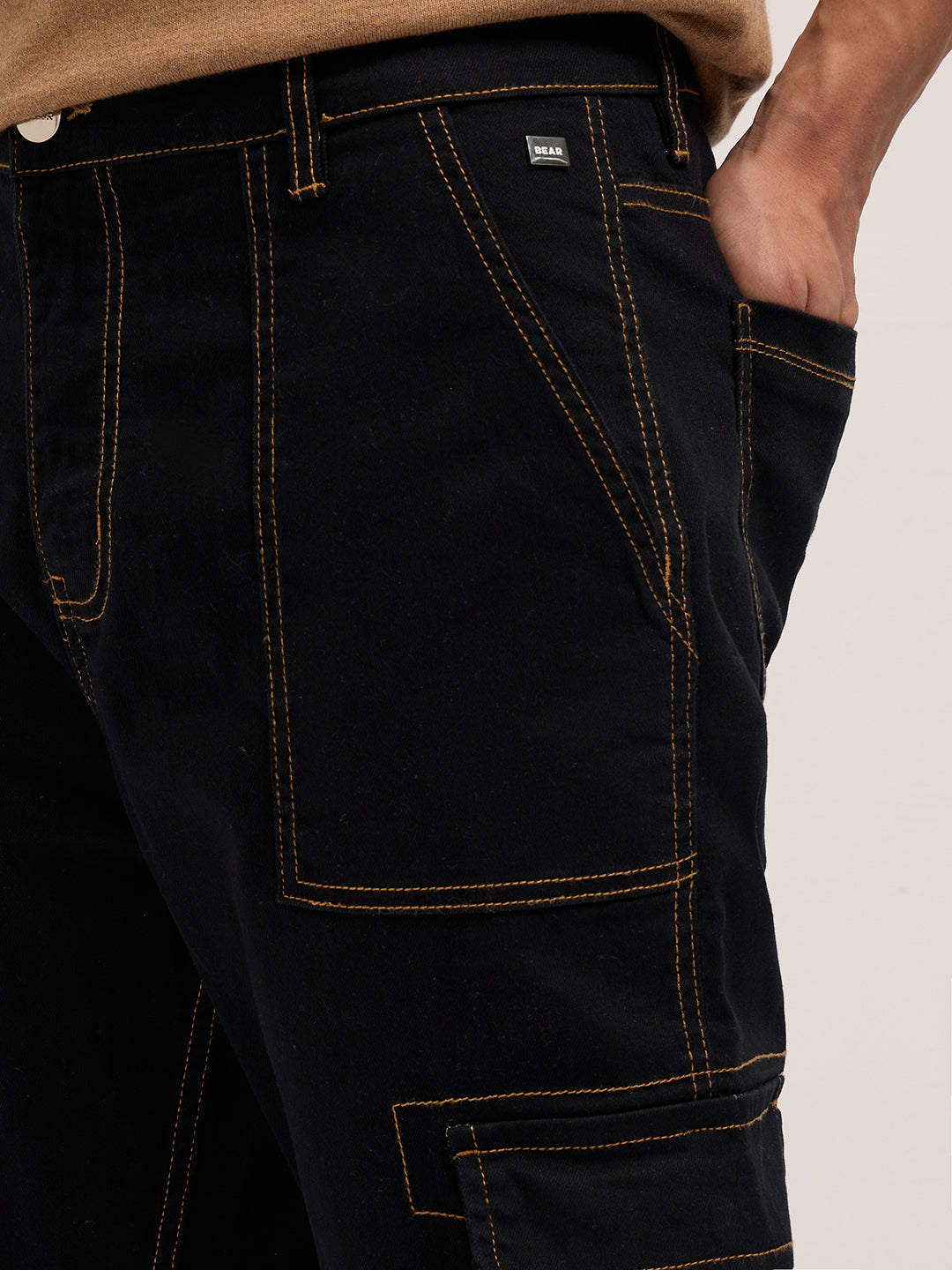 Black Mid-Rise Baggy Fit Cargo Jeans