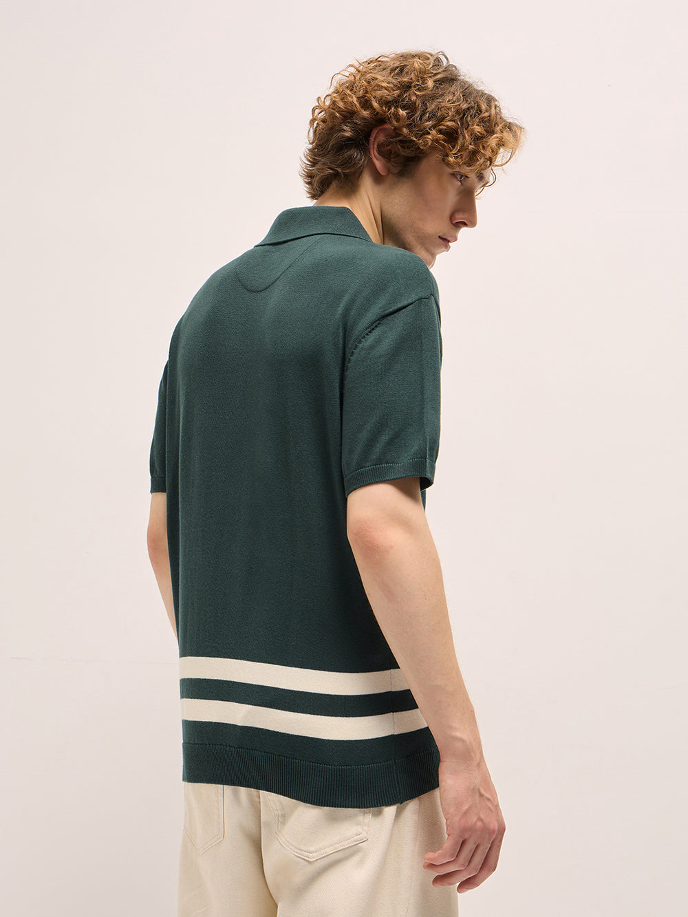 - Pattern: Solid with contrasting horizontal stripes at the hem