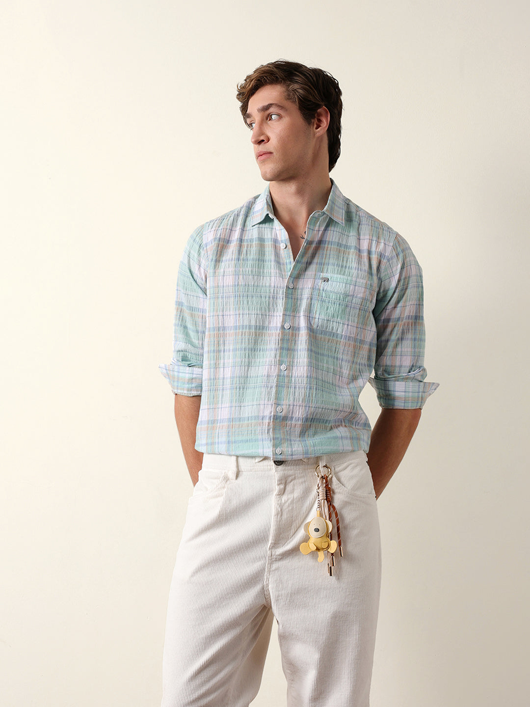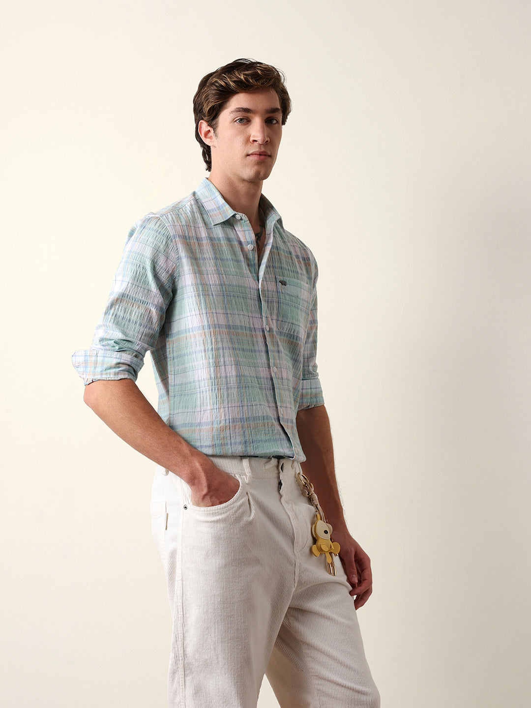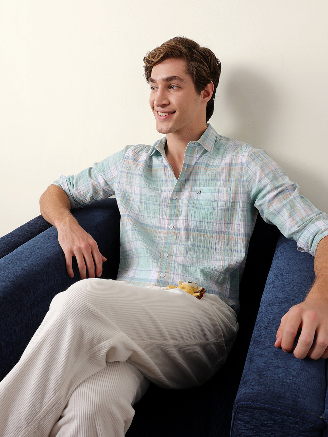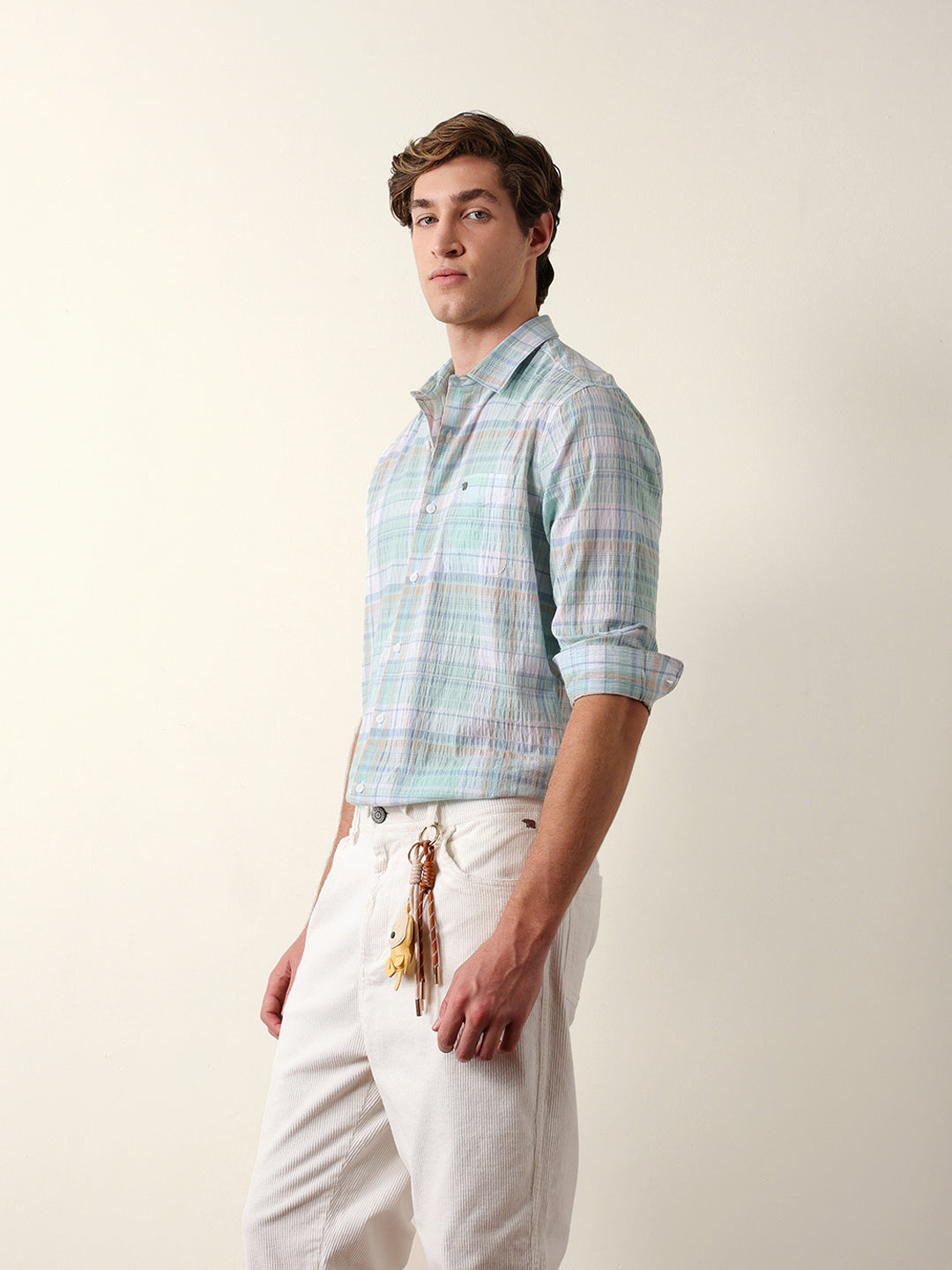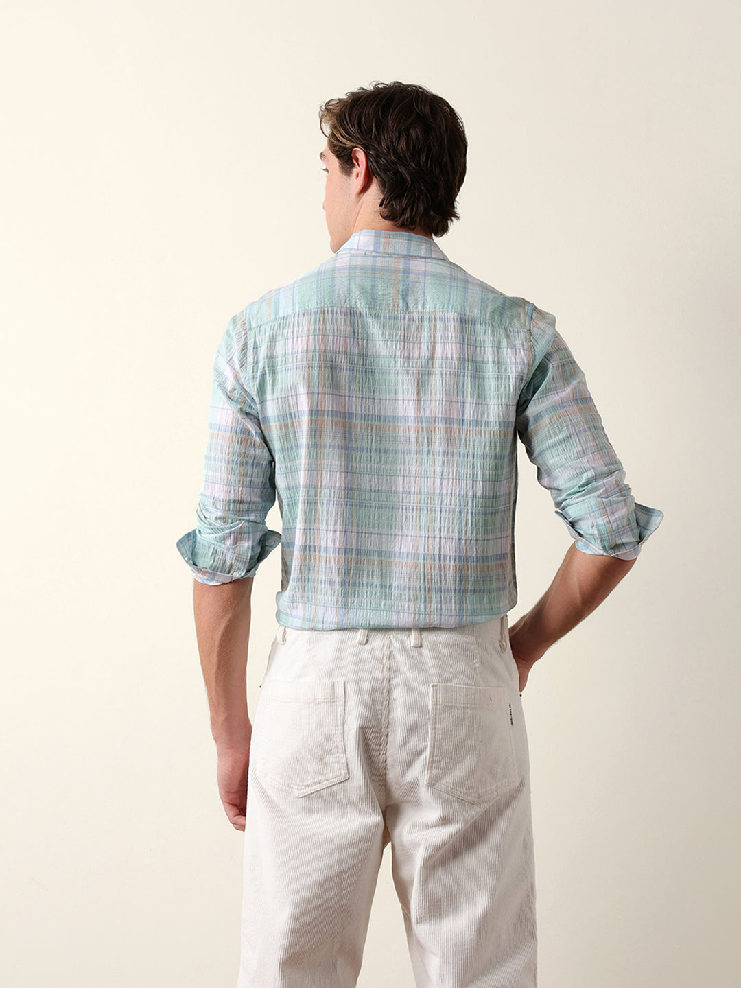 - Pattern : Woven Checkered Design with Crinkle Texture